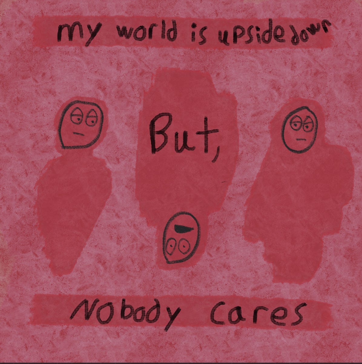 This doodle is a reflection on that feeling. Of being upside down, begging for help, but looking up to only find eyes glazed over in absolute apathy.