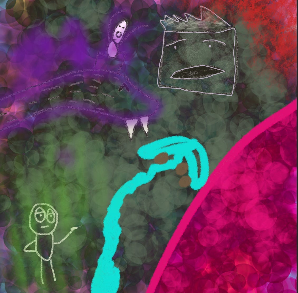 The following are 3 doodles I created in Procreate Pocket and my reflections on them. I did not use any prompts or “have a plan” before sitting down to draw. Each of these took 15 minutes or less. My hope is that these can serve as an example for your own process (otherwise I’m just trauma dumping on you for no reason and that would be cringe3).